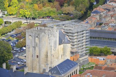 Porté par Niort Agglo, le chantier de sauvegarde de la tour nord du Donjon de Niort démarre. Le montage des 1500 m2 d'échafaudage s'est achevé fin octobre.